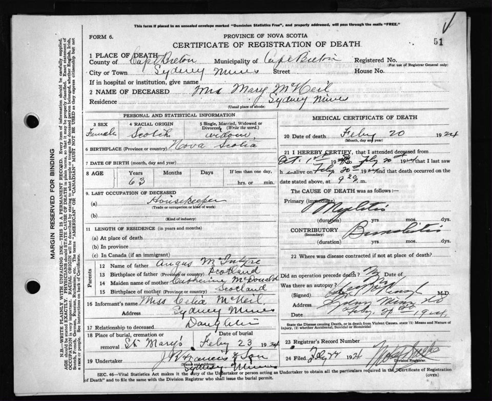 Death Registration: Year: 1924 file: 79 number: 51