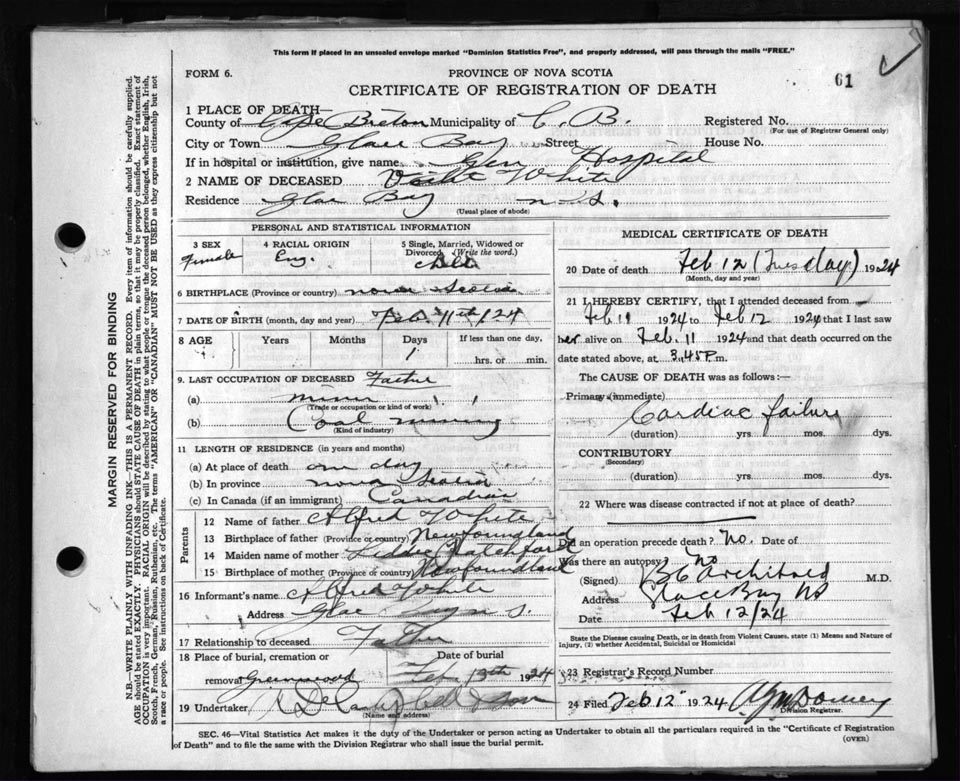Death Registration: Year: 1924 file: 79 number: 61
