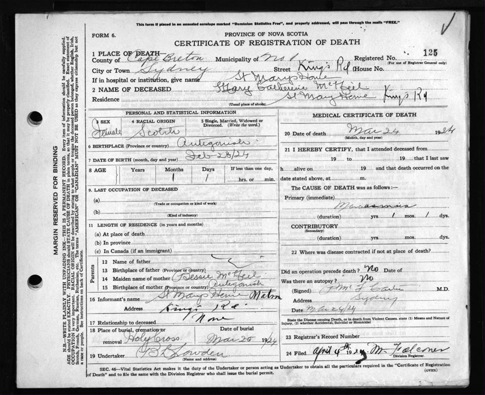Death Registration: Year: 1924 file: 79 number: 125