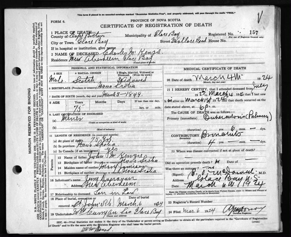 Death Registration: Year: 1924 file: 79 number: 157