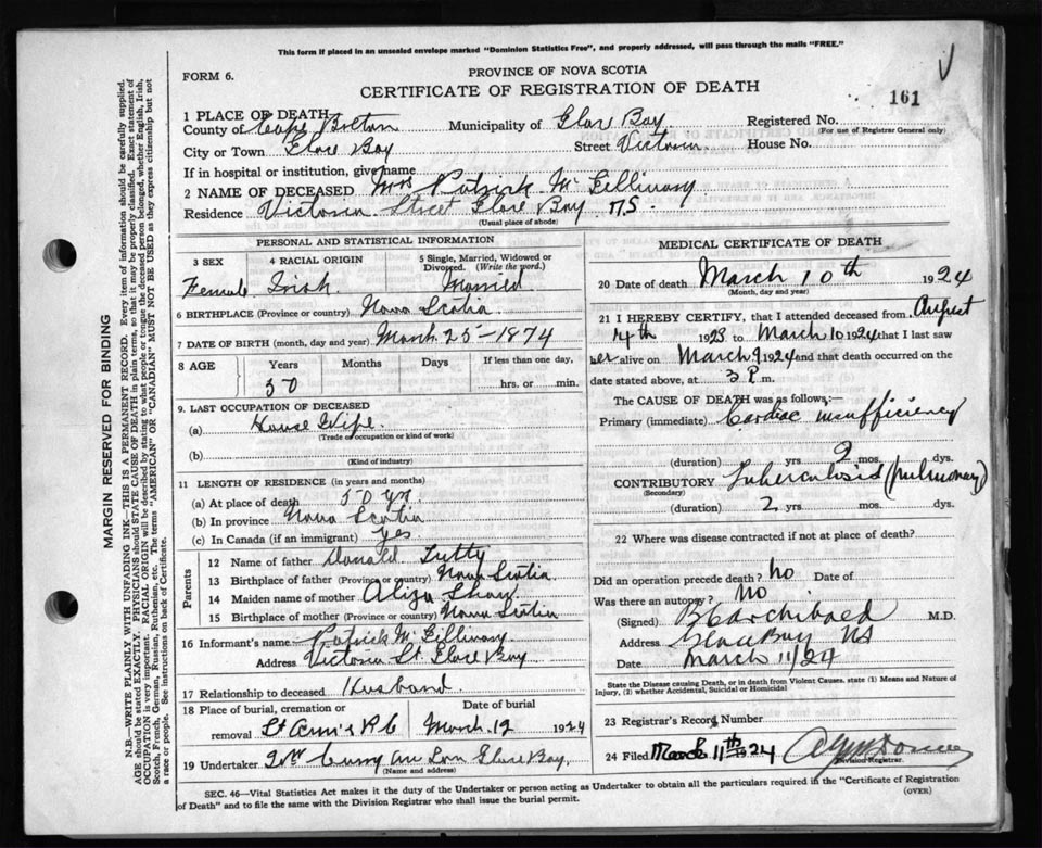 Death Registration: Year: 1924 file: 79 number: 161