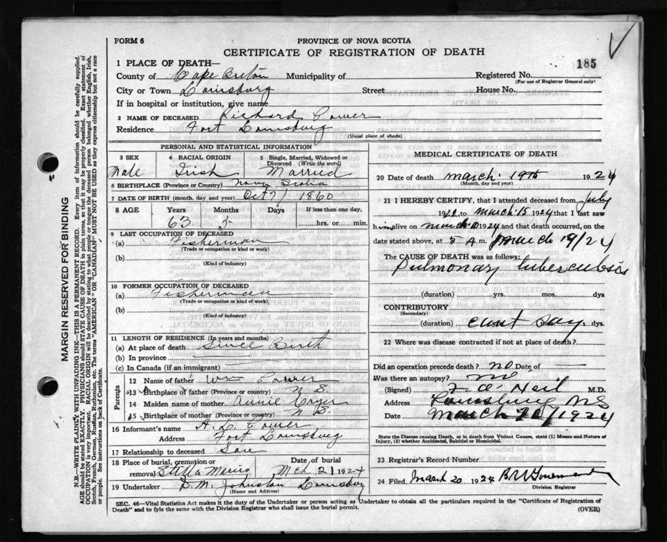 Death Registration: Year: 1924 file: 79 number: 185