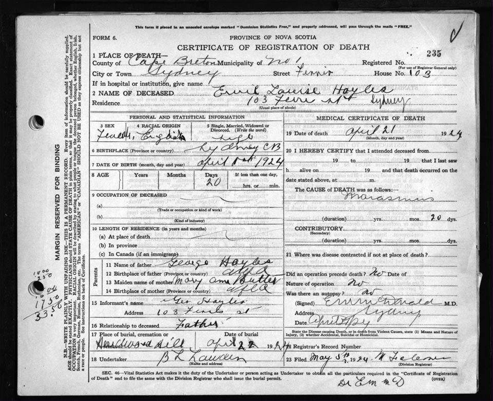 Death Registration: Year: 1924 file: 79 number: 235