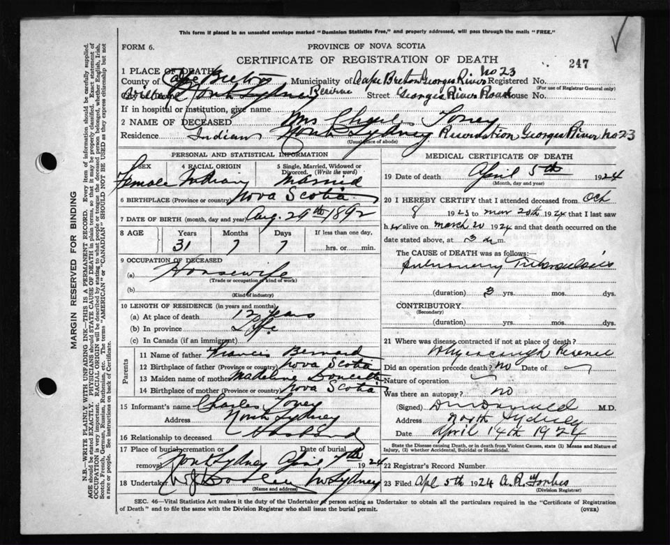 Death Registration: Year: 1924 file: 79 number: 247