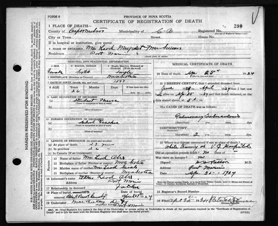 Death Registration: Year: 1924 file: 79 number: 290