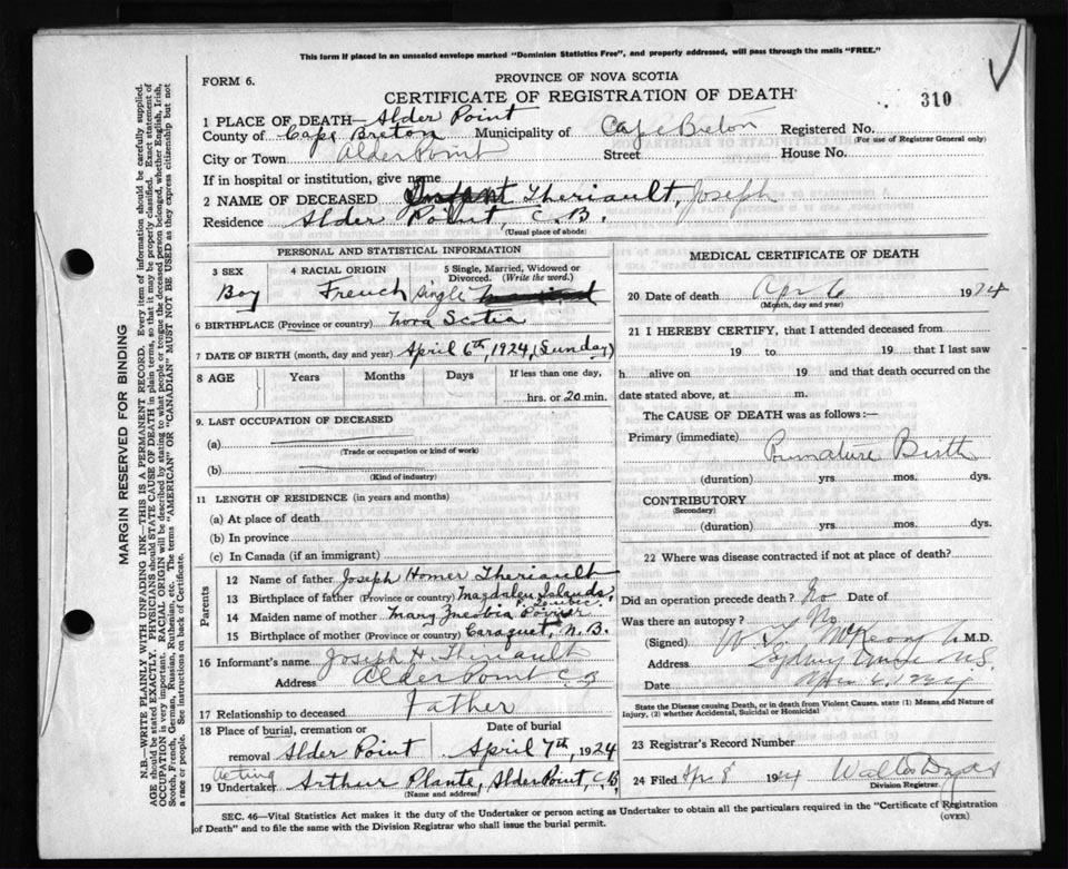 Death Registration: Year: 1924 file: 79 number: 310