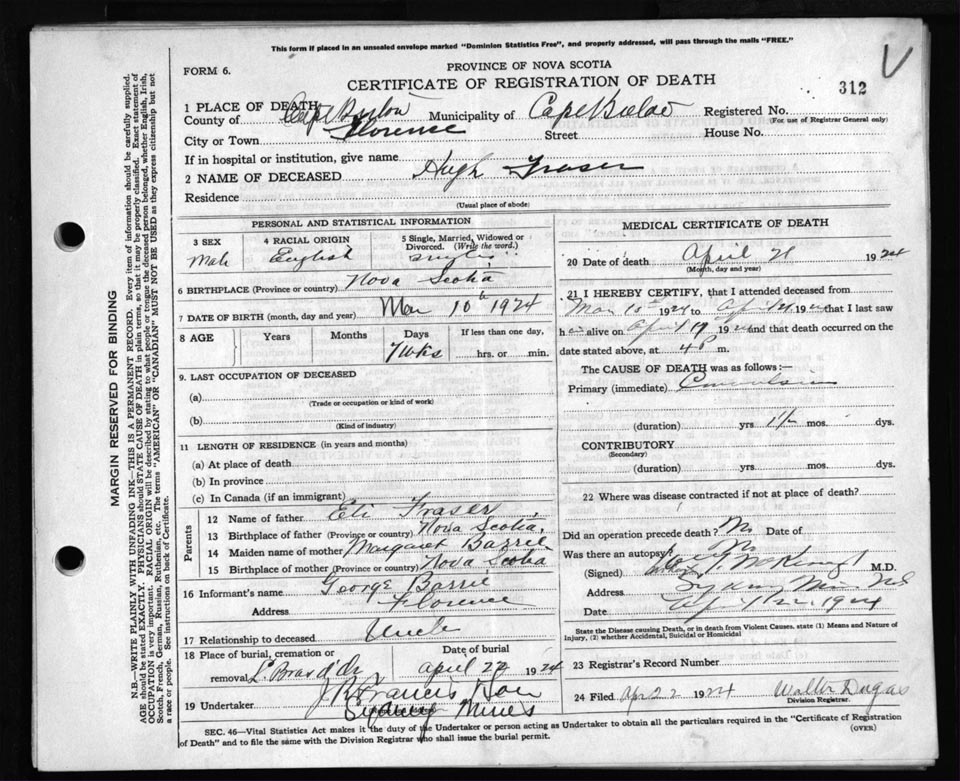 Death Registration: Year: 1924 file: 79 number: 312
