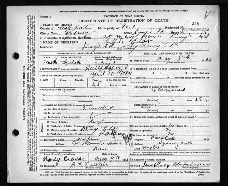 Death Registration: Year: 1924 file: 79 number: 328