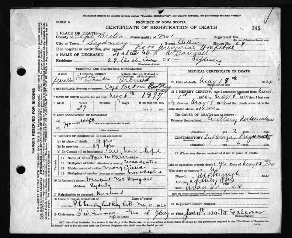 Death Registration: Year: 1924 file: 79 number: 345