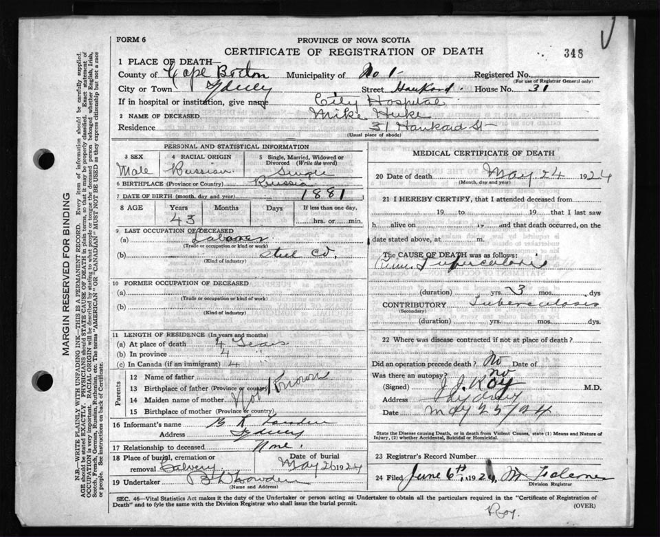 Death Registration: Year: 1924 file: 79 number: 348