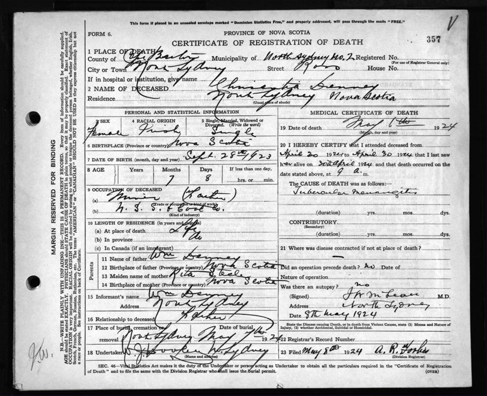 Death Registration: Year: 1924 file: 79 number: 357