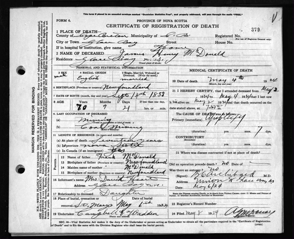 Death Registration: Year: 1924 file: 79 number: 379
