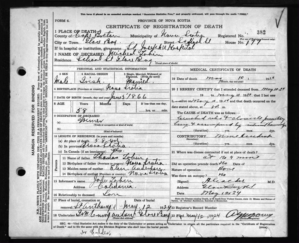 Death Registration: Year: 1924 file: 79 number: 382