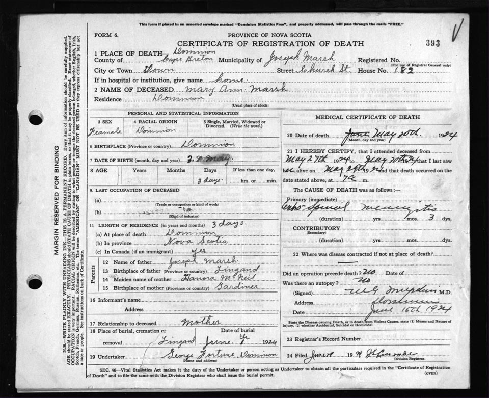 Death Registration: Year: 1924 file: 79 number: 393