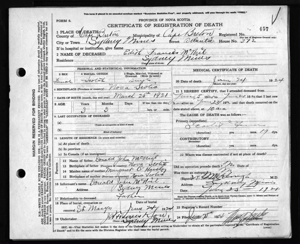 Death Registration: Year: 1924 file: 79 number: 457