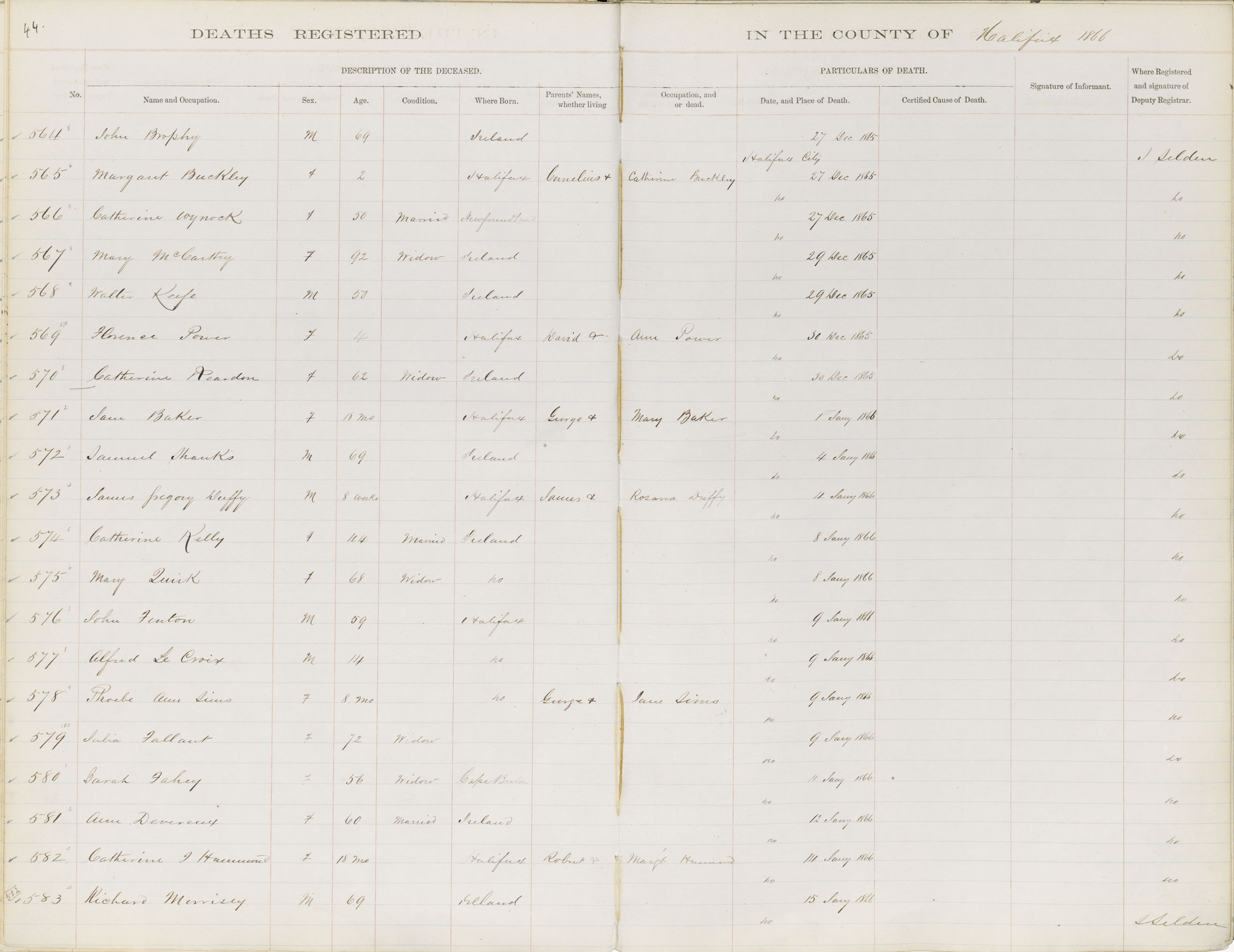 Death Registration: Year: 1866 book: 1808 page: 44 number: 583