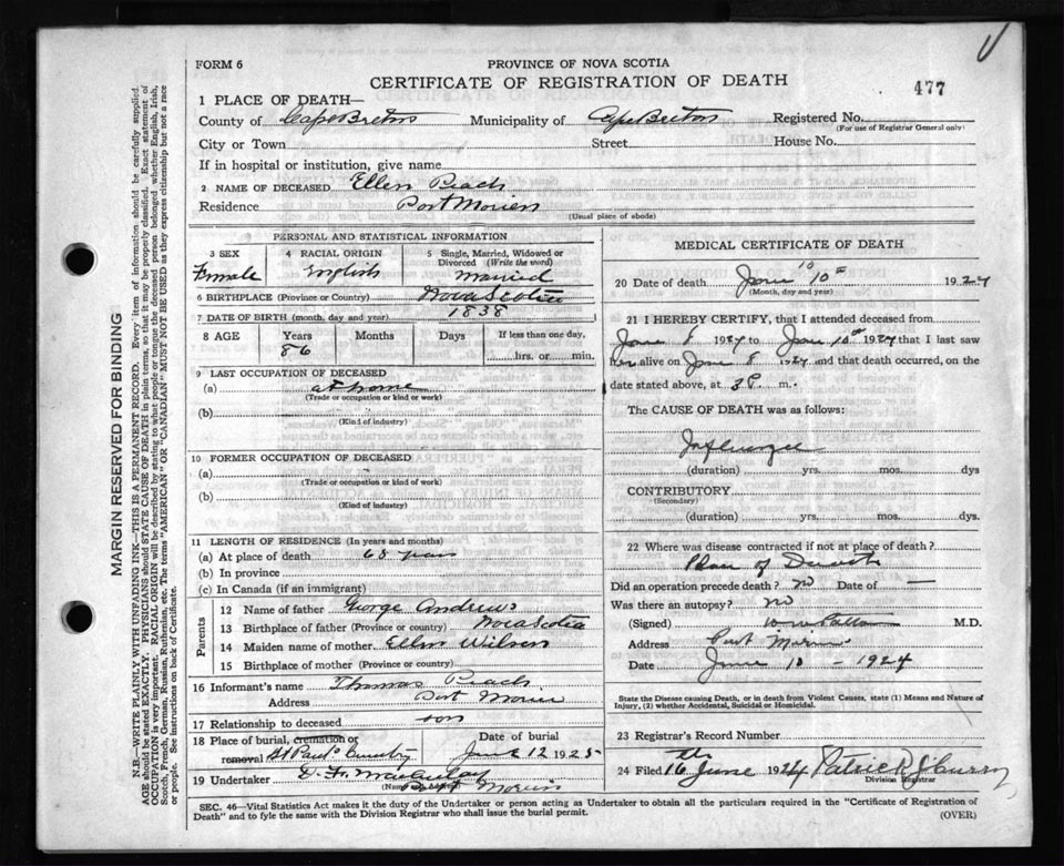 Death Registration: Year: 1924 file: 79 number: 477