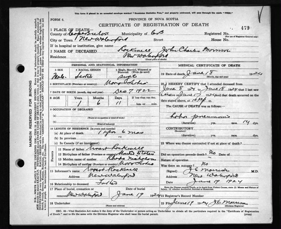 Death Registration: Year: 1924 file: 79 number: 479