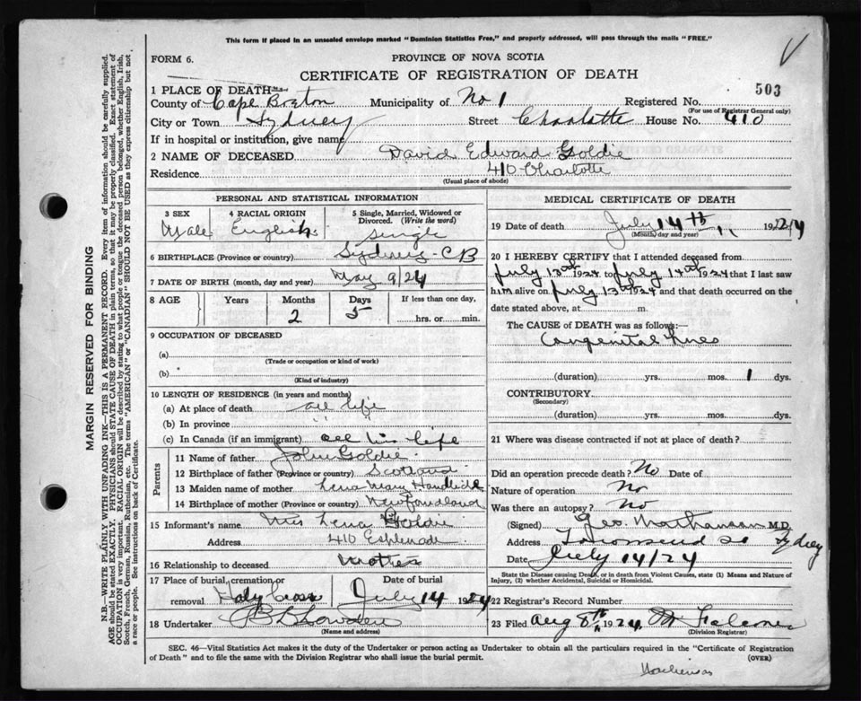 Death Registration: Year: 1924 file: 79 number: 503