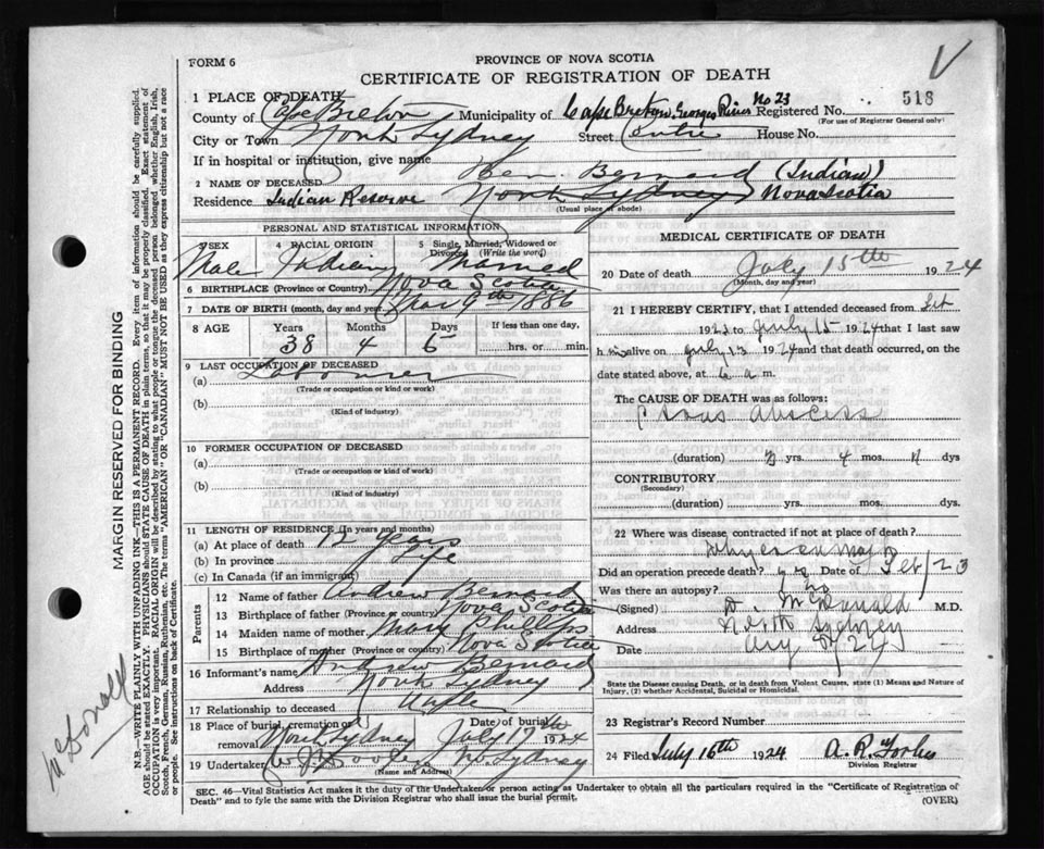 Death Registration: Year: 1924 file: 79 number: 518