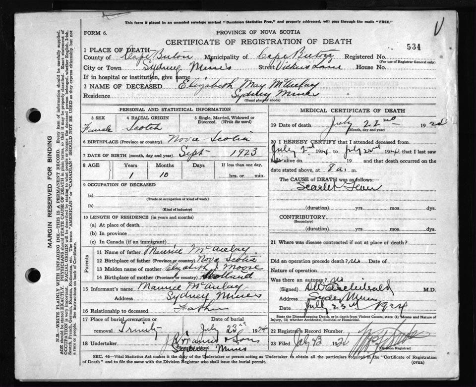 Death Registration: Year: 1924 file: 79 number: 534