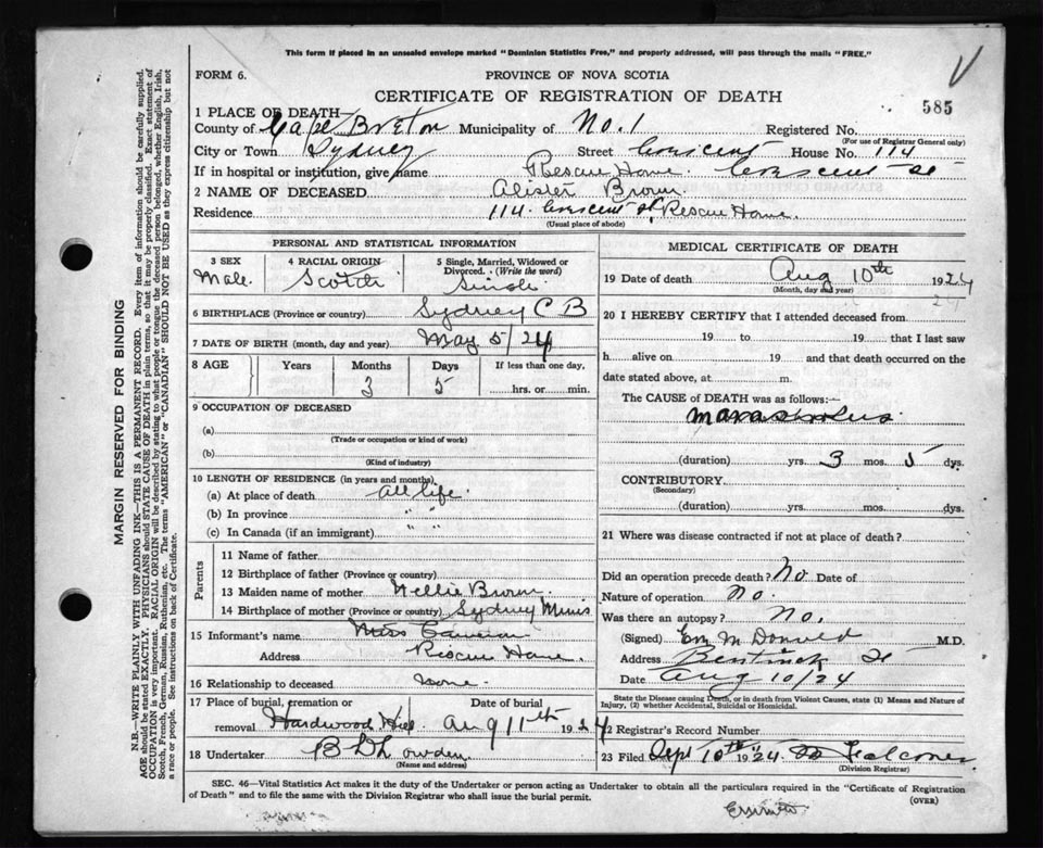 Death Registration: Year: 1924 file: 79 number: 585