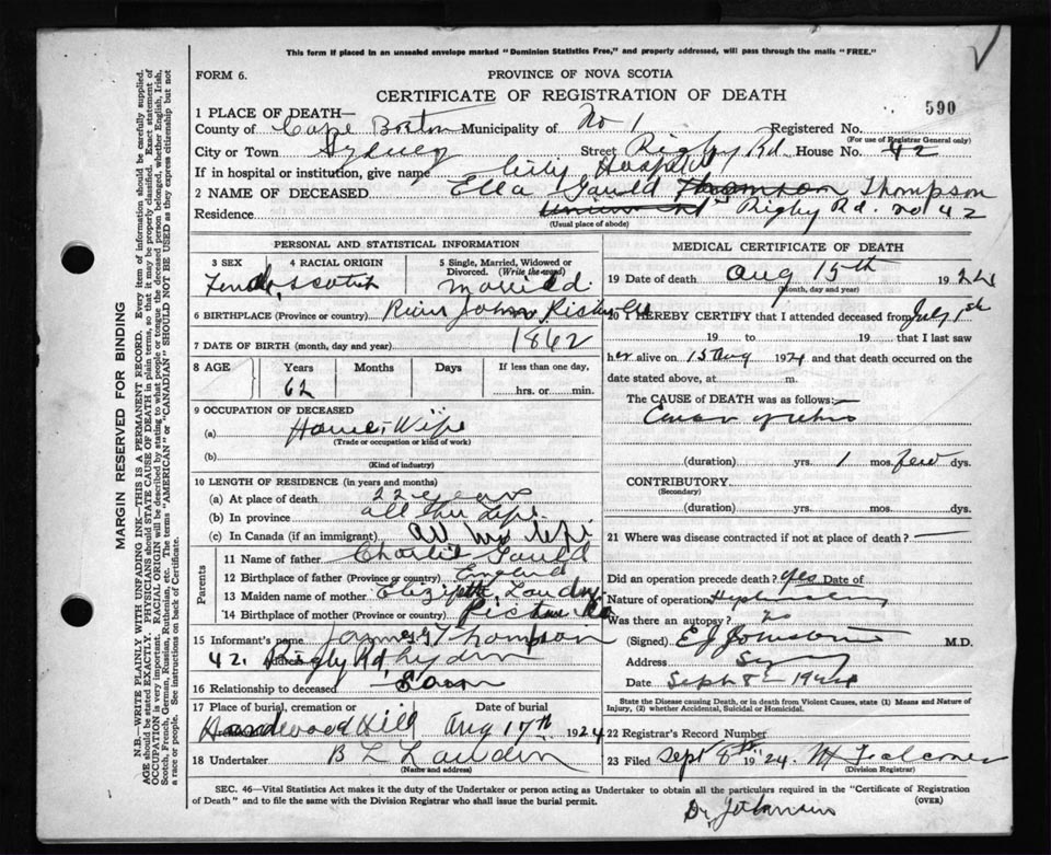 Death Registration: Year: 1924 file: 79 number: 590