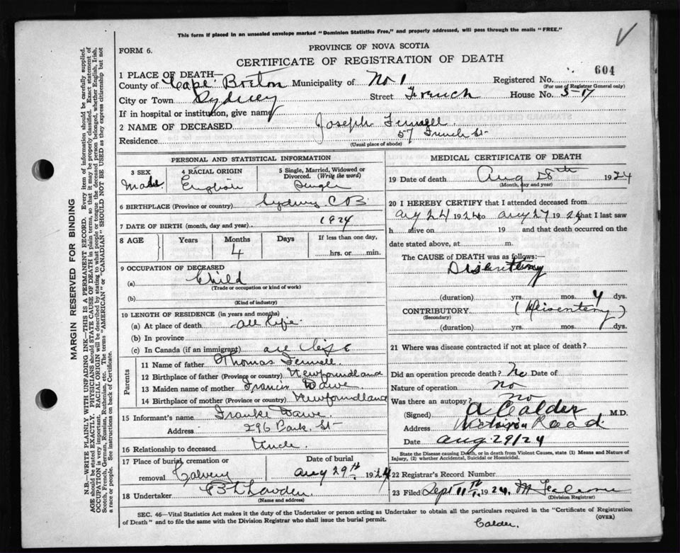 Death Registration: Year: 1924 file: 79 number: 604
