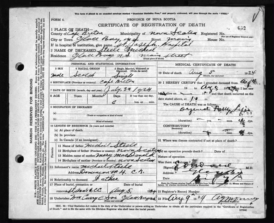 Death Registration: Year: 1924 file: 79 number: 632
