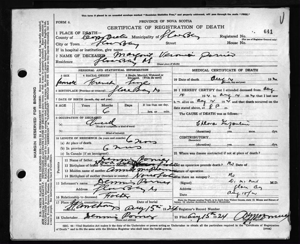 Death Registration: Year: 1924 file: 79 number: 641
