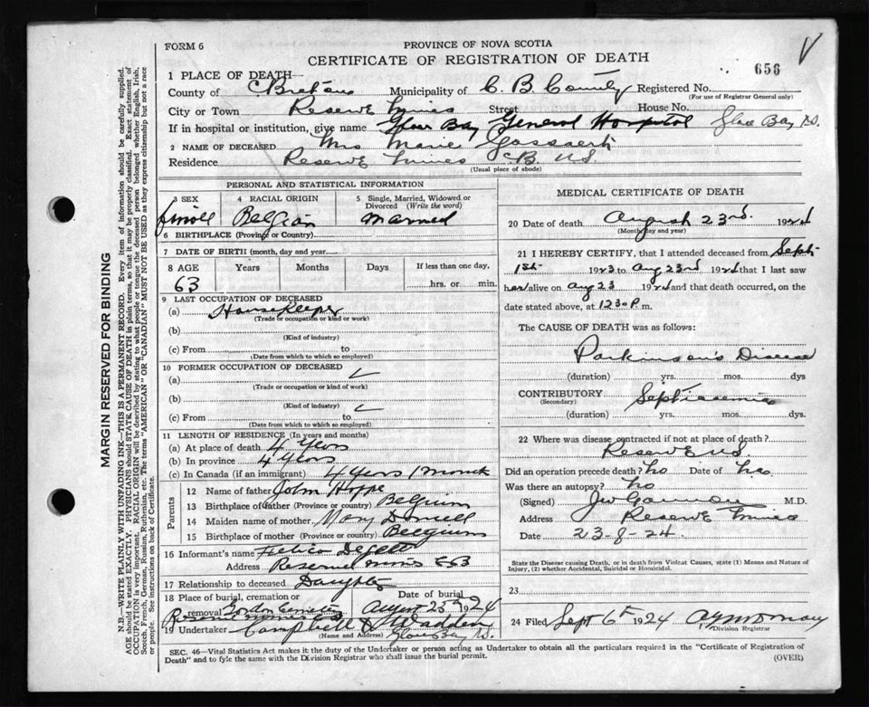 Death Registration: Year: 1924 file: 79 number: 656