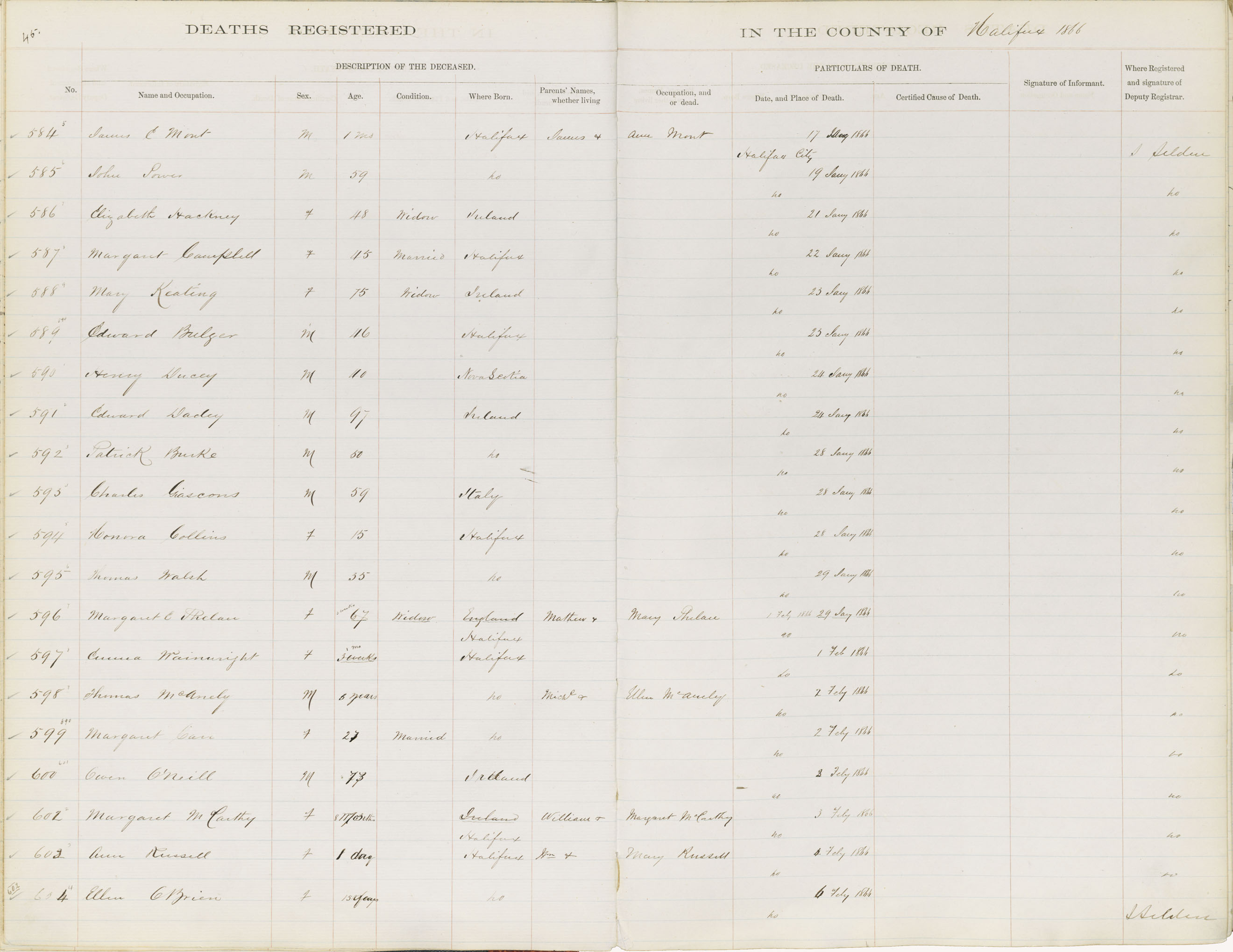 Death Registration: Year: 1866 book: 1808 page: 45 number: 604