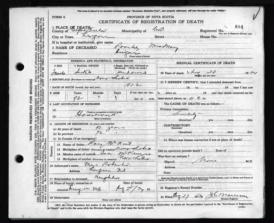 Death Registration: Year: 1924 file: 79 number: 684