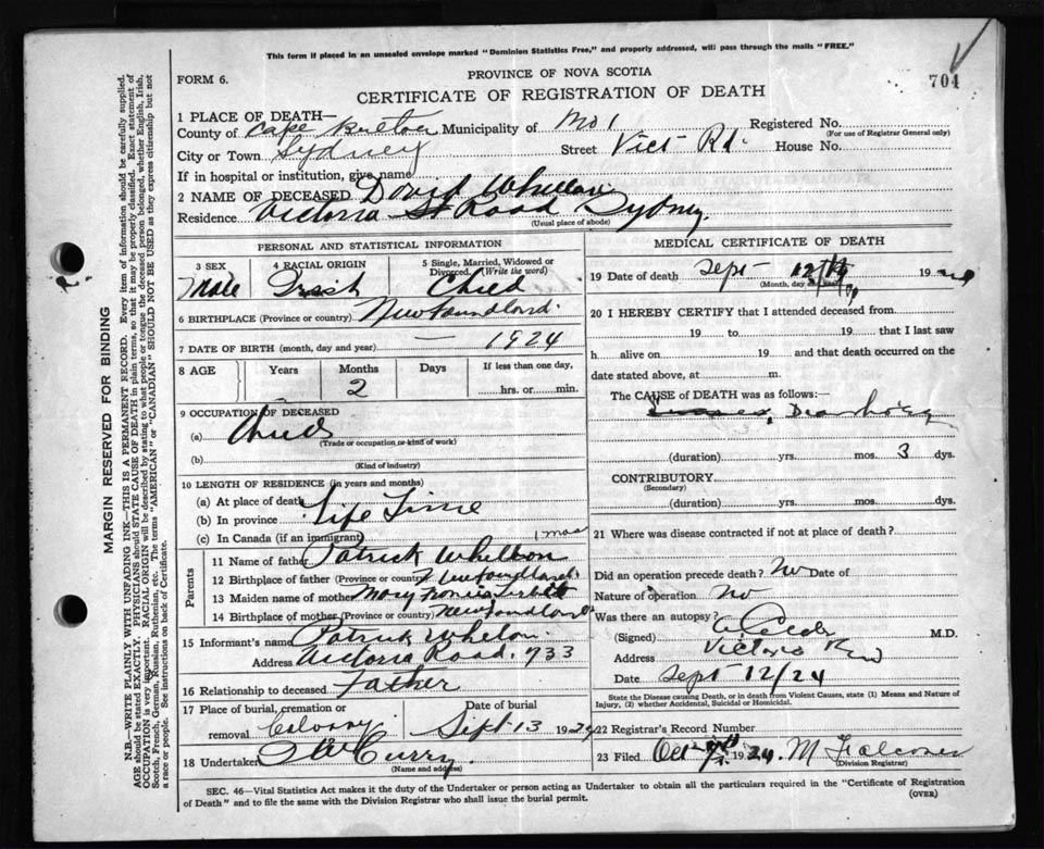 Death Registration: Year: 1924 file: 79 number: 704