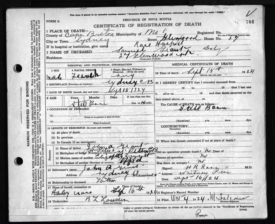 Death Registration: Year: 1924 file: 79 number: 706