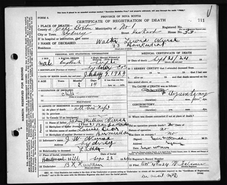 Death Registration: Year: 1924 file: 79 number: 711