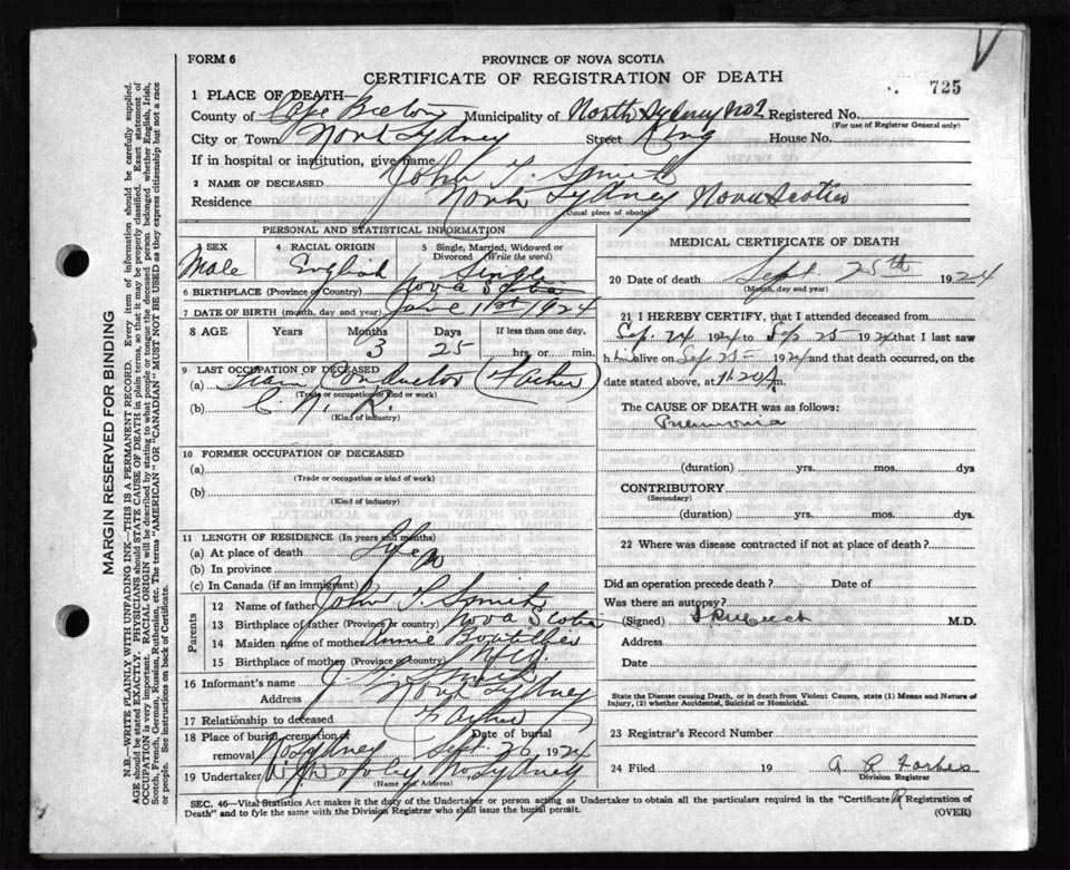 Death Registration: Year: 1924 file: 79 number: 725