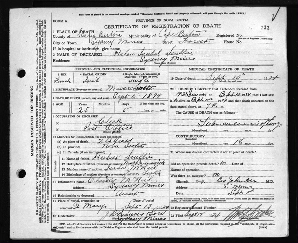 Death Registration: Year: 1924 file: 79 number: 732