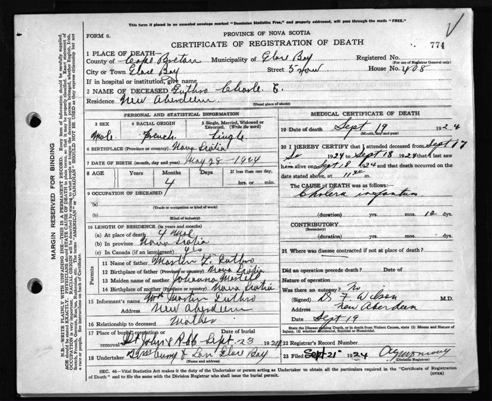 Death Registration: Year: 1924 file: 79 number: 774