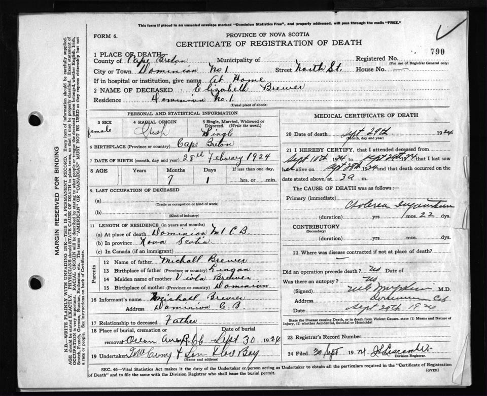 Death Registration: Year: 1924 file: 79 number: 790