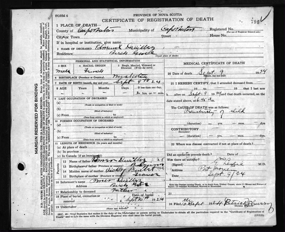 Death Registration: Year: 1924 file: 79 number: 796