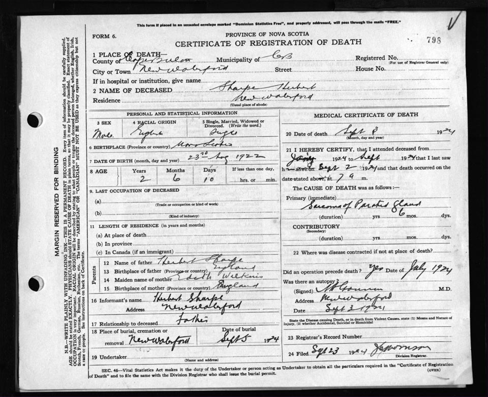 Death Registration: Year: 1924 file: 79 number: 798