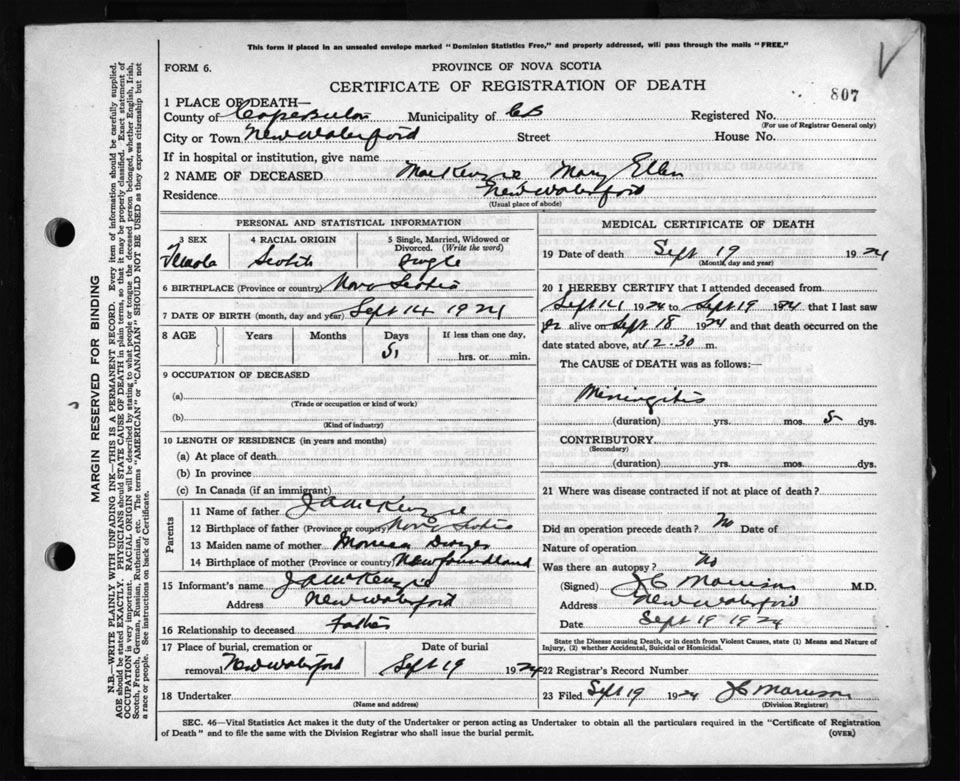 Death Registration: Year: 1924 file: 79 number: 807