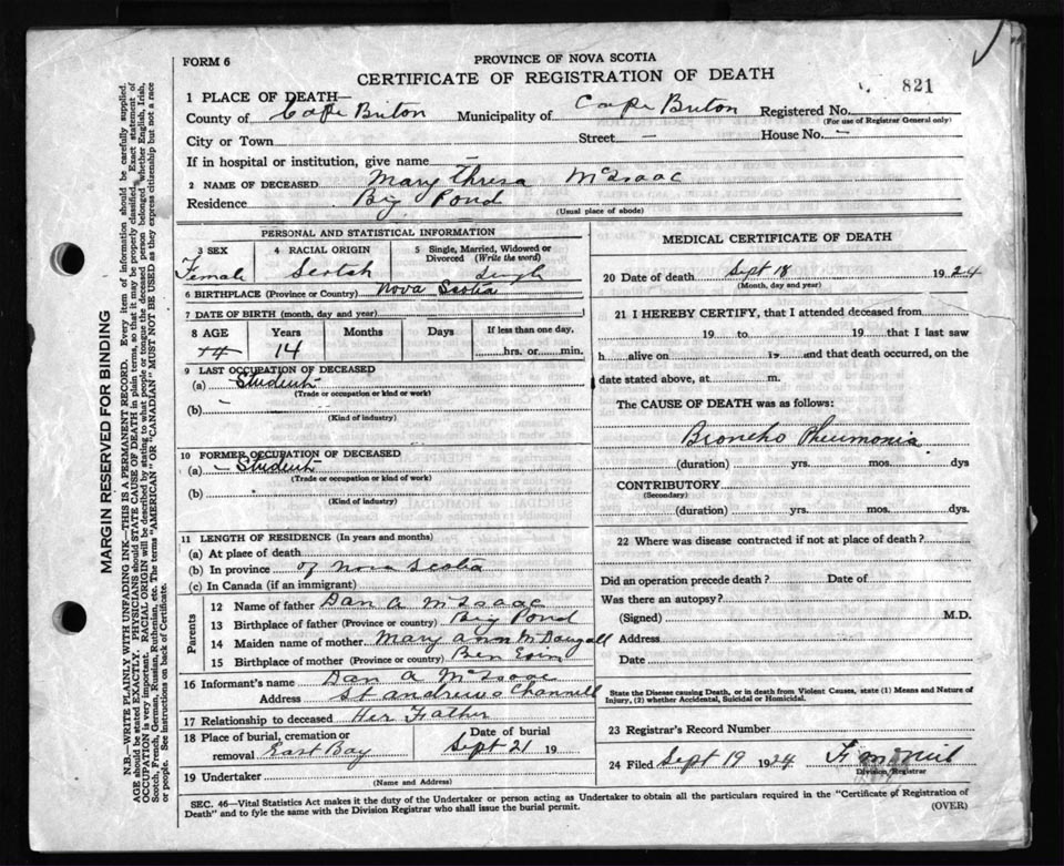Death Registration: Year: 1924 file: 79 number: 821