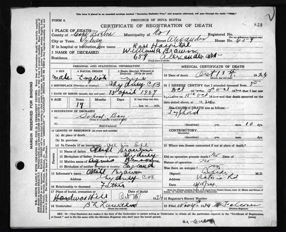 Death Registration: Year: 1924 file: 79 number: 839