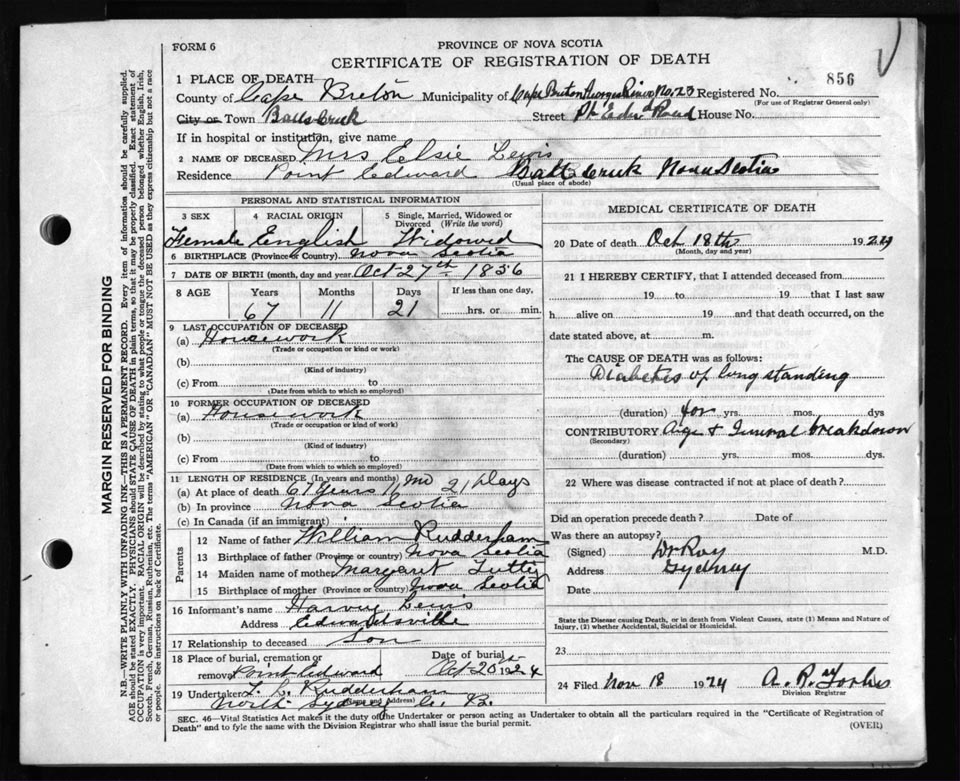 Death Registration: Year: 1924 file: 79 number: 856