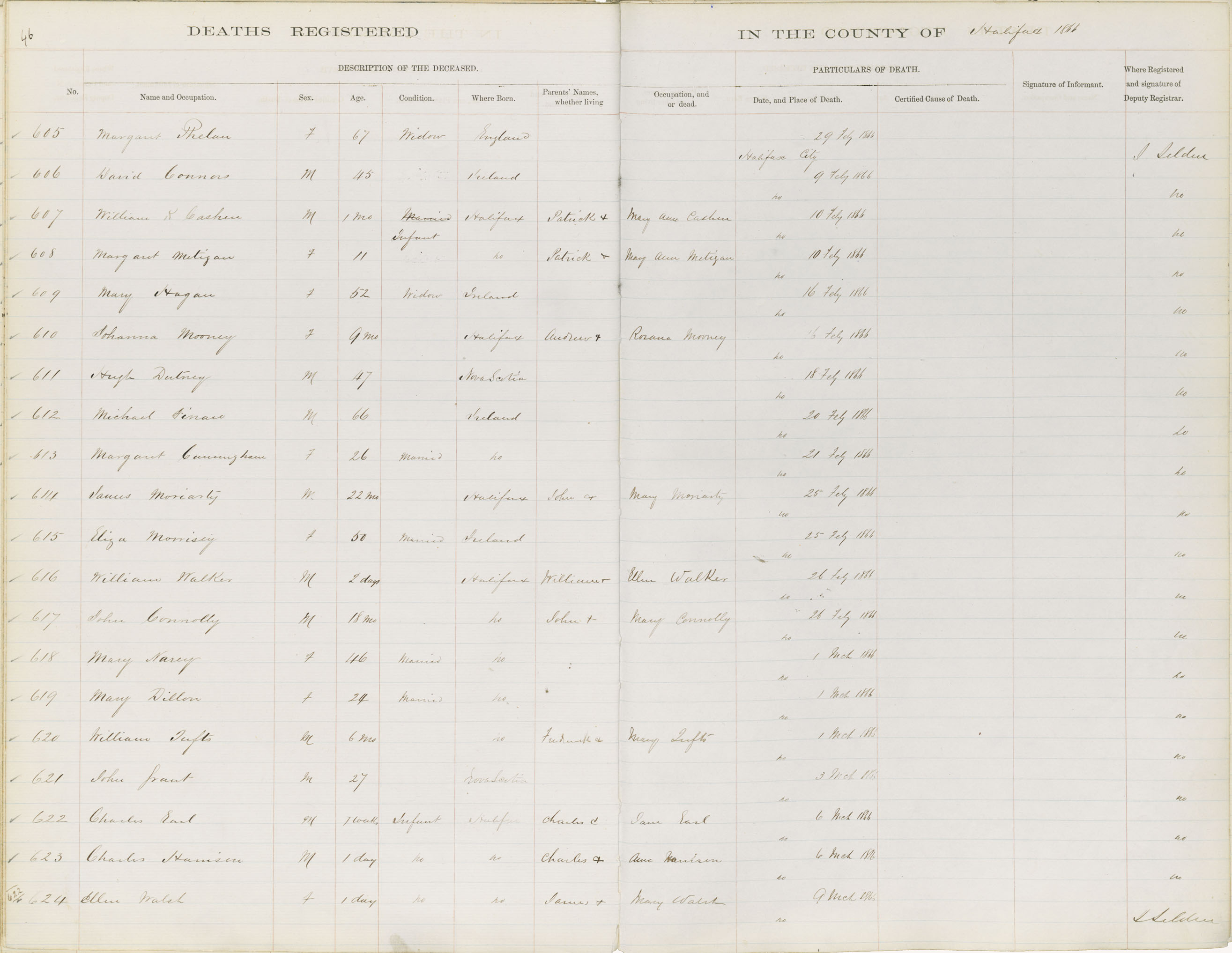 Death Registration: Year: 1866 book: 1808 page: 46 number: 624