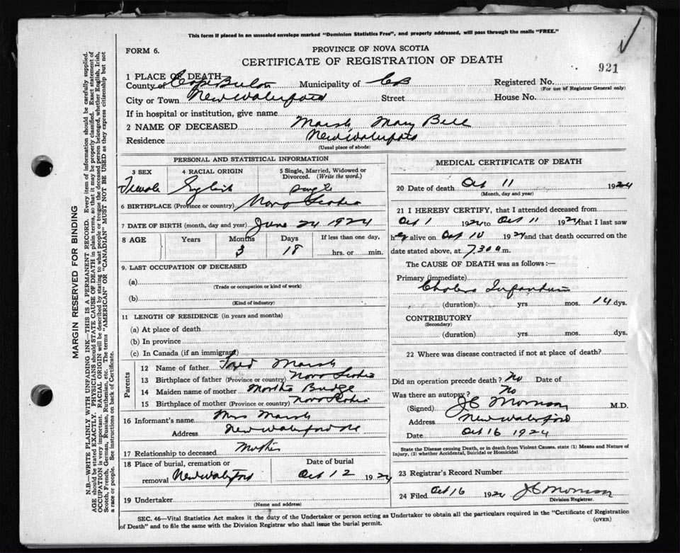 Death Registration: Year: 1924 file: 79 number: 921