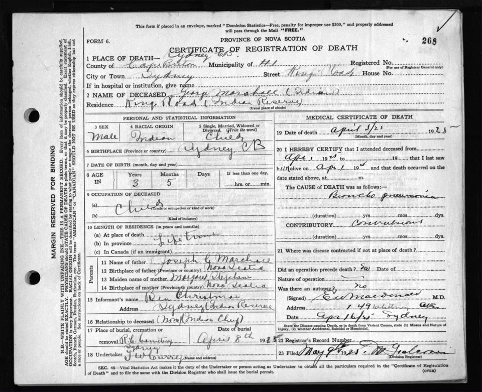 Death Registration: Year: 1925 file: 80 number: 268