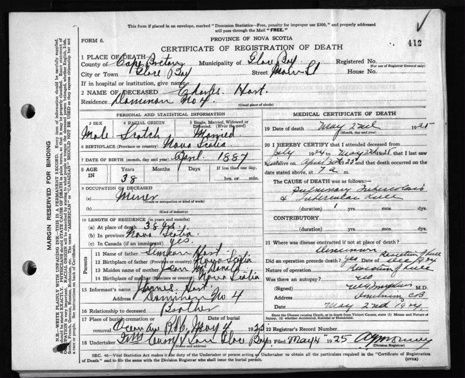Death Registration: Year: 1925 file: 80 number: 412